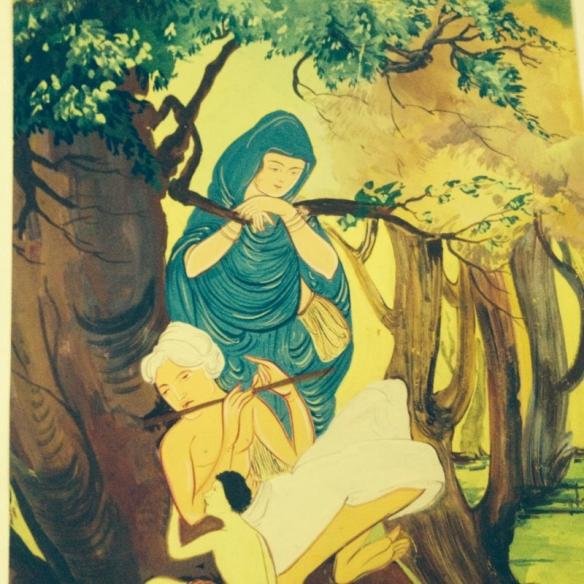This painting shows a family sitting together at the trunk of a large tree in a forest.The tall trees and greenery around them create a peaceful, protective atmosphere, while the family’s closeness underlines love , bonding and togetherness.
